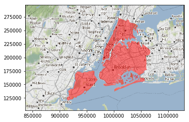 %matplotlib inline from importlib import reload import geopandas as gpd import rasterio from rasterio.plot import show as rioshow import matplotlib.pyplot as plt import contextily as ctx from contextily.tile import warp_img_transform, warp_tiles, _warper db = gpd.read_file(gpd.datasets.get_path('nybb'))